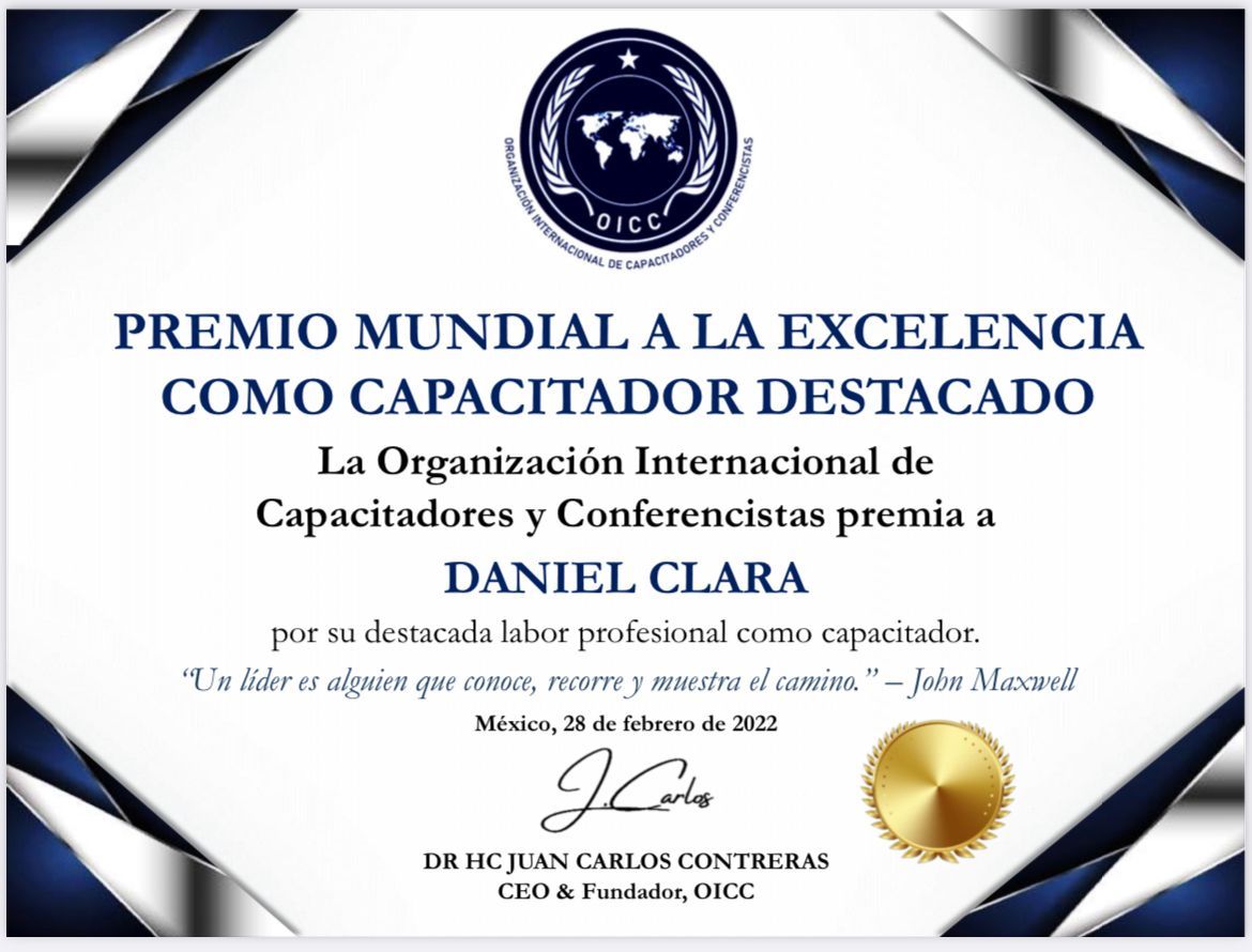 Con mas de 70 reconocimientos empresariales obtenidos a través de diversos cursos, talleres, certificaciones y diplomados como: Master Trainer, Cerrador Compra-Venta, PNL, Negociación, Emprendimiento, IQ Financiero, múltiples certificaciones ante CONOCER.